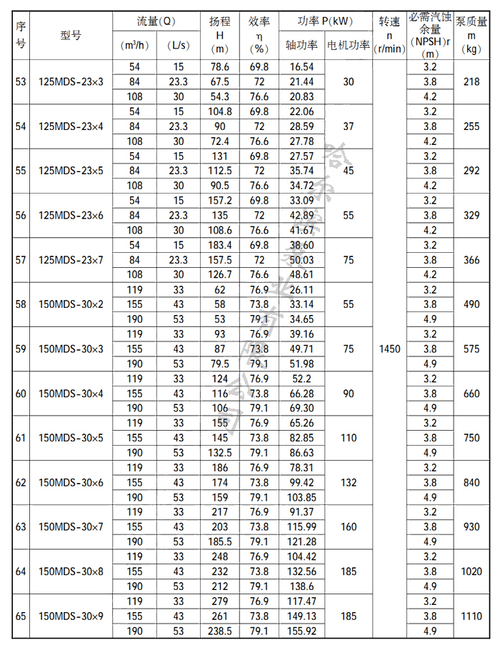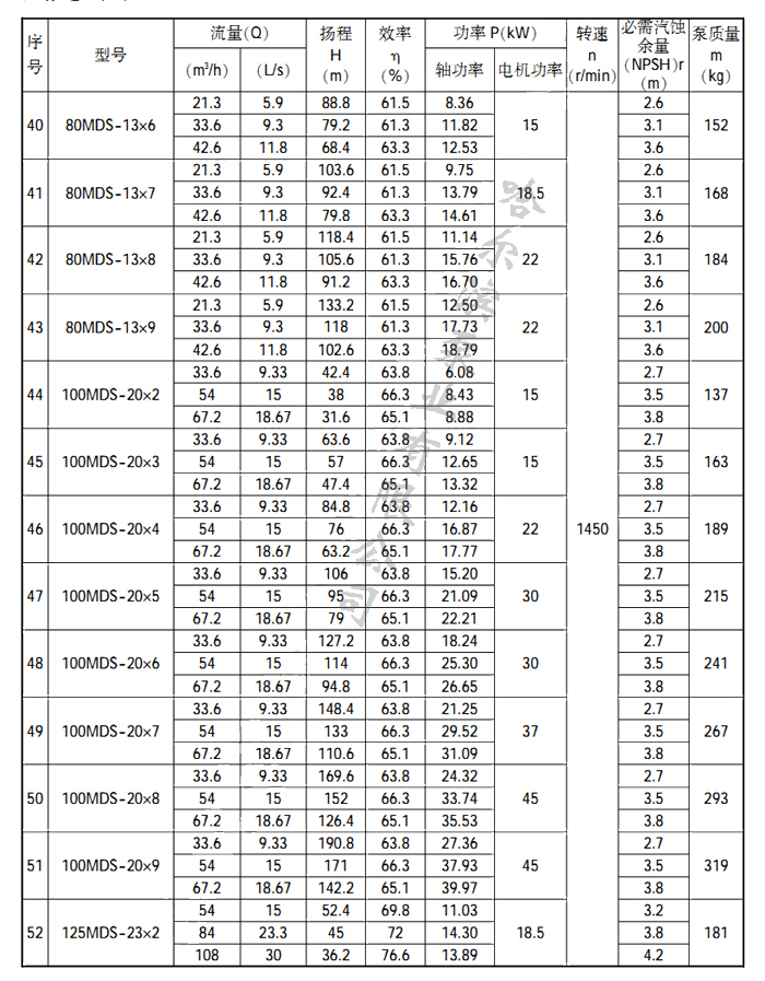 MDS 系列雙渦殼多級離心泵是根據(jù)本廠引進日本荏原公司技術生產MS 型泵的基礎上,對原有的產品改進而形成的,改進了該泵的平衡盤,平衡環(huán)和主要過流部件的材質,該泵運行平穩(wěn),性能穩(wěn)定,適用于煤礦、工廠及其它場合輸送固體顆粒含量 不大于1.5%(粒徑小于0.5mm)的中性液體介質、介質溫度≤80℃。