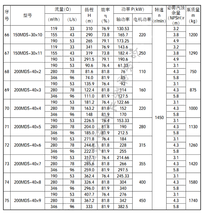 該系列泵共9個規(guī)格74個型號,泵進出口徑:25-200(mm)。