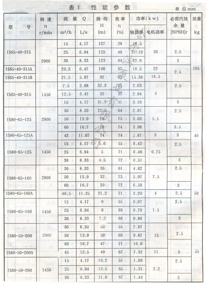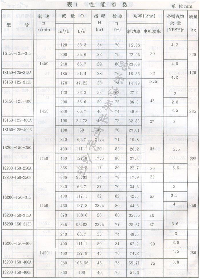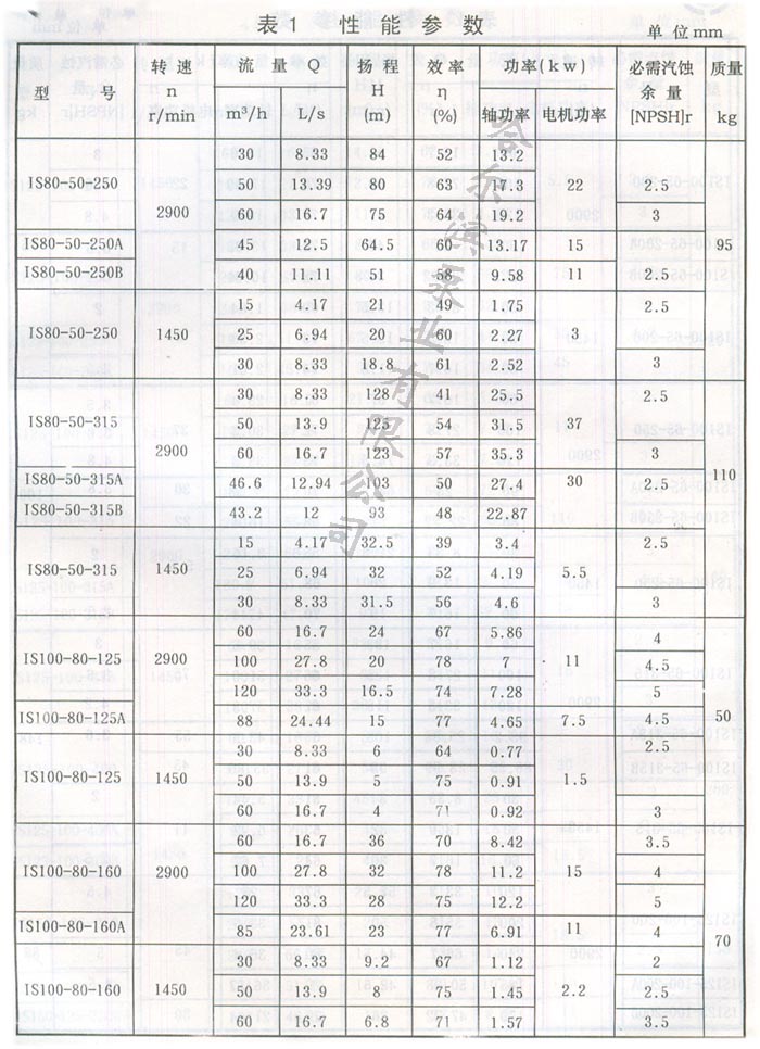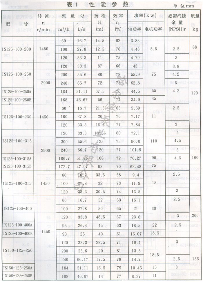 IS型泵系單級單吸(軸向吸入)離心泵,適用于工業和城市給水、排水,亦可用于農業排灌。供輸送清水和物理化學性質類似清水的其它液體之用,溫度不高于80%。